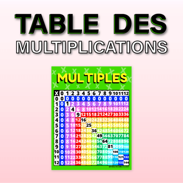 Enseignez vos leçons avec cette table de multiplication à imprimer. Une affiche mathématique idéale pour aider les élèves dans leurs exercices en mathématique. Présentant les multiples de 0 à 12, cet outil constitue une ressource pédagogique incontournable pour développer la maîtrise des nombres et soutenir l’apprentissage en classe. Parfait pour ajouter à votre matériel pédagogique pour la classe, ce support visuel aide les enfants à repérer rapidement les résultats, à mieux comprendre les opérations en mathématique et à consolider leurs connaissances.